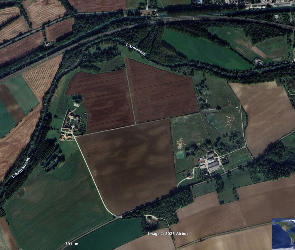 1960 : vue de la ferme à partir de la sucrerie de Brienon-sur-Armançon. La ligne droite va du bourg à la ferme par la traverseElargissement du cadre montrant l’environnement et le village de Brienon-sur-ArmançonVers 1955 : on distingue les parcs à cochons sur la traverse et le petit étang au Nord, à gauche sur la photoLa même photo agrandie pour mieux voir les bâtimentsPhoto un peu floue, mais donnant une vue différente par le côté d’Ormoy. Cette photo vient peut-être d’Etienne Marlot qui pilotait et passait régulièrement au-dessus de la ferme. Elle est réalisée après 1975 , le grand étang est visible sur ces photos.Essayez de dater cette photo ! Les parcs à porc de la traverse ne sont plus là (après 1955), la cour n’est pas encore verte (avant 2000). Vers1975?Zoom sur la ferme : la toiture est impeccable, la cour est verte, la ferme est un ilôt vert.1985 Carte IGN de l’époque